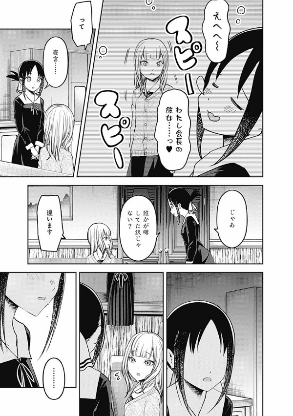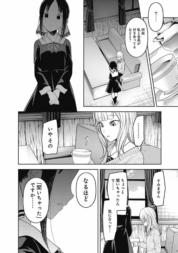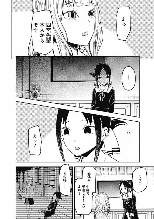 「恋愛は告白した方が負けなのである!」 エリートの集う秀知院学園生徒会で出会った会長・白銀御行と副会長・四宮かぐや…。この両想いであるはずの天才2人が、互いに相手に惚れさせ、相手から告白させようと日常の全てで権謀術数の限りを尽くす、新感覚のラブコメ!! …として始まった本作も、第18巻まで積み重ね、2人は付き合い始め、3学期を迎えた!! その事実は、絶対に誰にもバレてはいけないのだが、かぐやはラブ度が高めの日は生徒会室でもいちゃつきたいと思うほど完全にアホになってしまった!? そして2年生は、修学旅行で京都へ!! しかし、かぐやは旅先で白銀といちゃつく間もなく…専属近侍・早坂愛との絆が試される“修学旅行編”開幕!!