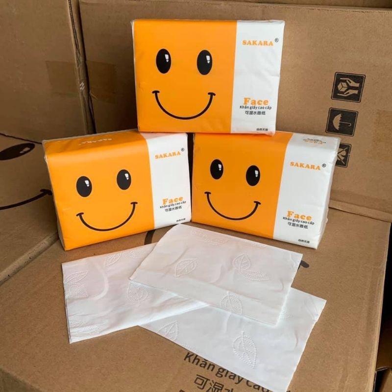 Giấy ăn SAKARA được thiết kế 4 lớp giấy, có in vân, Giấy siêu mềm mịn và không có bụi nên các Mẹ sử dụng rất an toàn cho bé nhà mình nha.