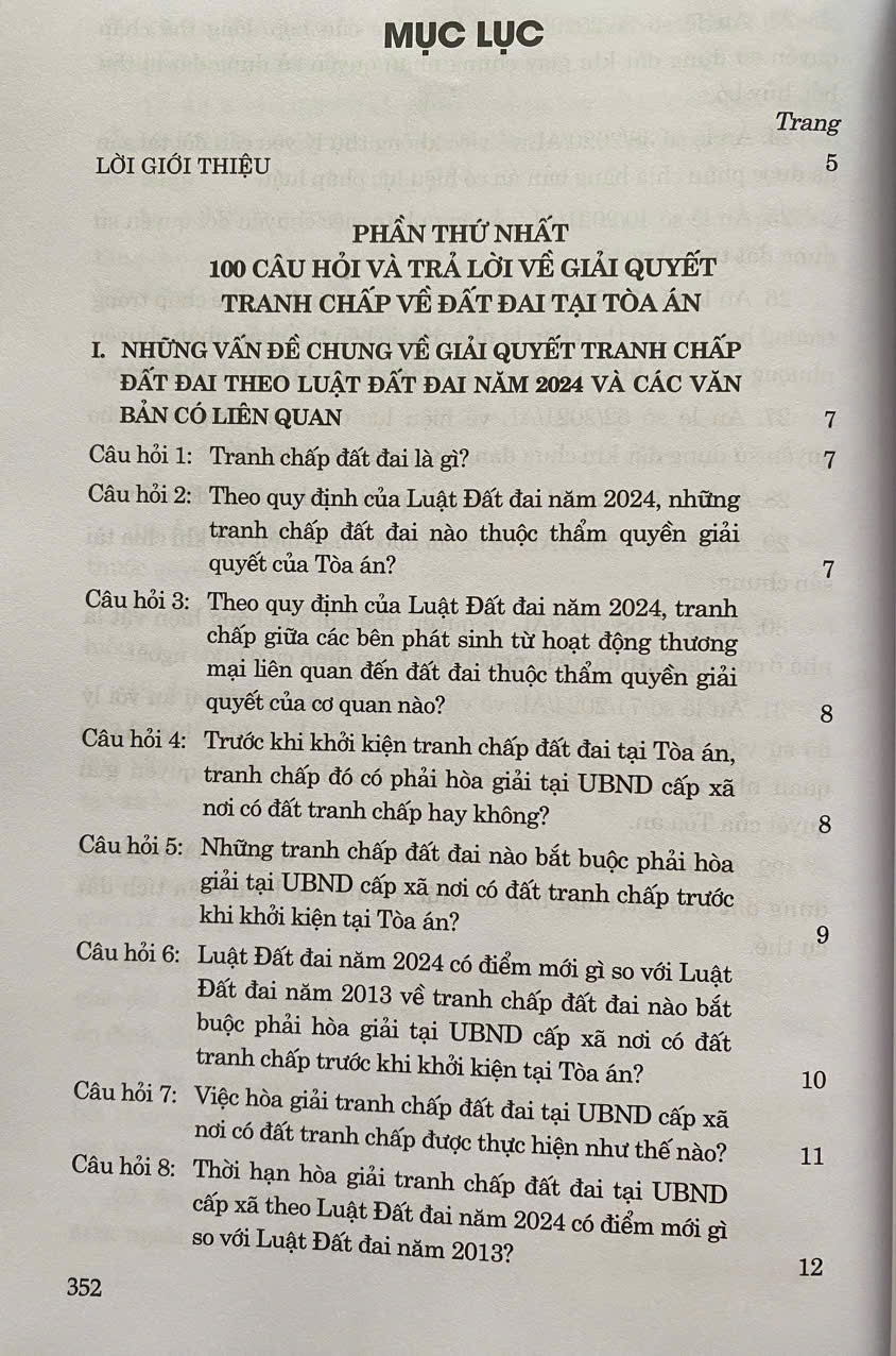 Luật Đất đai là luật quan trọng, tác động đến mọi mặt của đời sống kinh tế - xã hội, quốc phòng, an ninh, bảo vệ môi trường của đất nước; giữ vai trò trung tâm trong hệ thống pháp luật về đất đai, có mối quan hệ với nhiều quy định khác của hệ thống pháp luật. Chính vì vậy, việc tìm hiểu và áp dụng đúng các quy định của Luật Đất đai năm 2024 có ý nghĩa rất quan trọng. Trong bối cảnh đó, Luatvietbook xin trân trọng giới thiệu đến bạn đọc cuốn sách "100 CÂU HỎI GIẢI QUYẾT TRANH CHẤP VỀ ĐẤT ĐAI TẠI TOÀ ÁN" do ThS. NCS. Tạ Đình Tuyên biên soạn.