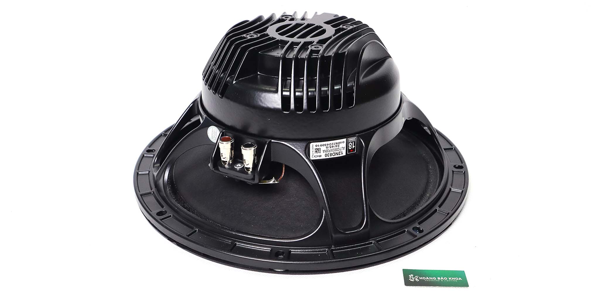 12ND830 là âm trầm neodymium 300mm (12 in) và khác với 12ND930 trong quan niệm về dây, cung cấp một nhẹ hơn với hệ số lực thấp hơn. 12ND830 tìm thấy ứng dụng lý tưởng của nó trong các thùng phản xạ nhỏ gọn, nơi yêu cầu một lượng đáng kể tần số thấp và độ méo tiếng thấp. Trọng lượng thấp tối ưu của nó làm cho nó phù hợp cho việc lắp đặt cố định hoặc hệ thống loa chuyên nghiệp di động. Cụm nam châm neodymium do các kỹ sư của Eighteen Sound phát triển đảm bảo nồng độ từ thông cao, nén công suất thấp và trao đổi nhiệt tuyệt vời vì cấu hình nam châm bên ngoài hiệu quả hơn đáng kể so với cấu trúc liên kết nam châm dưới cực truyền thống.