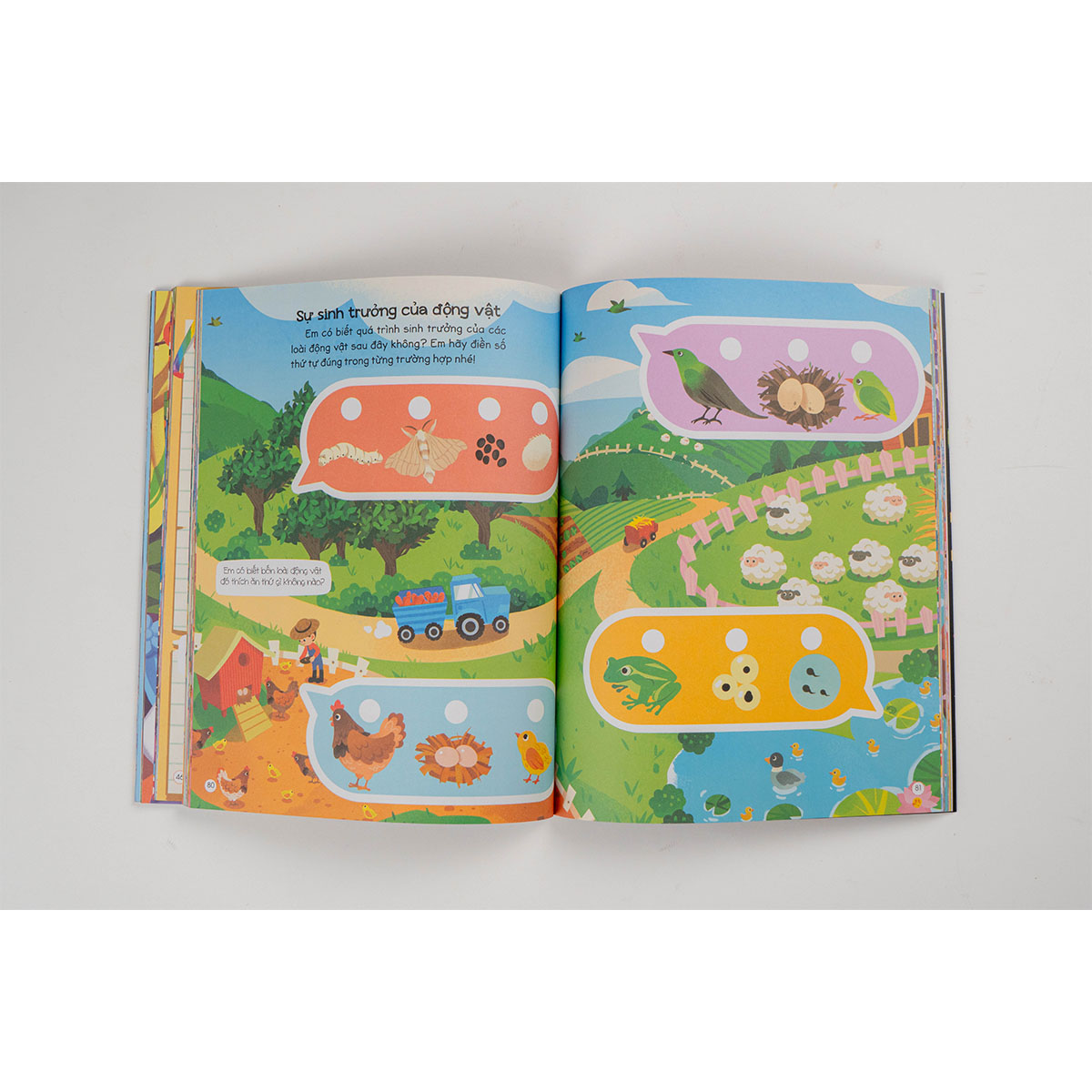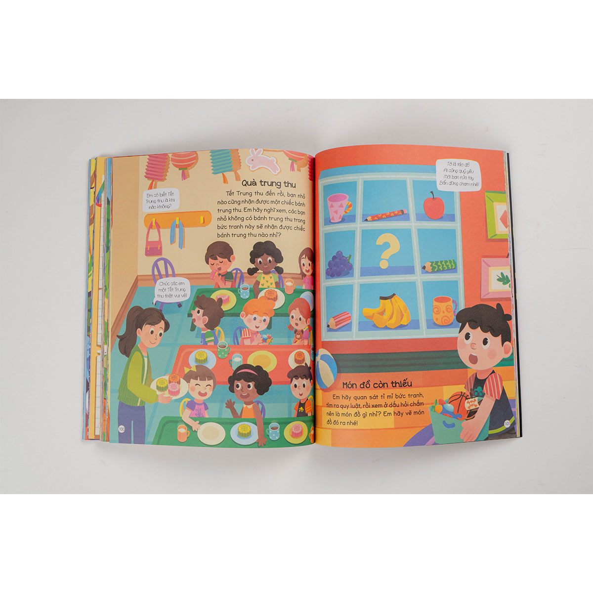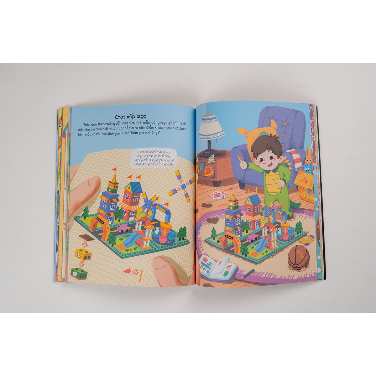 Hơn 140 hoạt động đa dạng cho bé không hề nhàm chán: tìm điểm giống và khác nhau, sắp xếp thứ tự, tìm đồ vật, học về chữ số, giải đố IQ,…