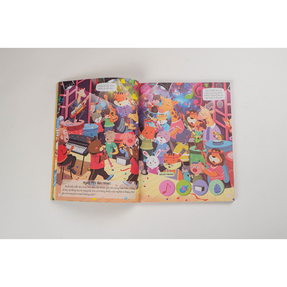 Sách được in màu 100%, tranh vẽ bắt mắt và các trò chơi đánh đố thú vị chắc chắn sẽ khiến mọi bé đều thích mê.