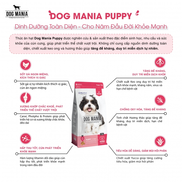 - Hàm lượng Vitamin dồi dào giúp cún hấp thu tốt, phát triển khỏe mạnh trong năm đầu đời