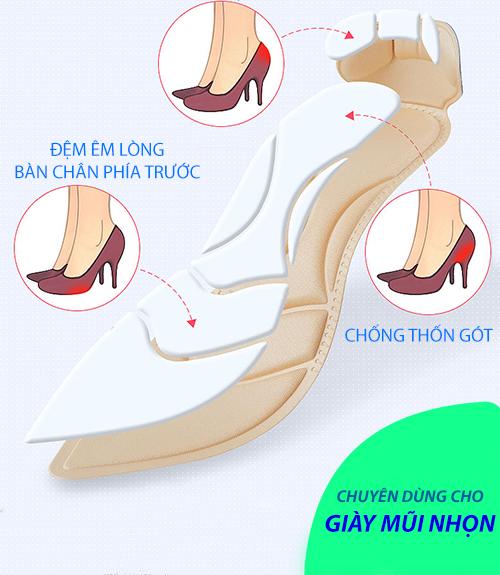 Lót giày đa năng sử dụng được cho nhiều loại giày khác nhau như: giày cao gót mũi nhọn, giày búp bê mũi nhọn, giày mọi, giày lườ