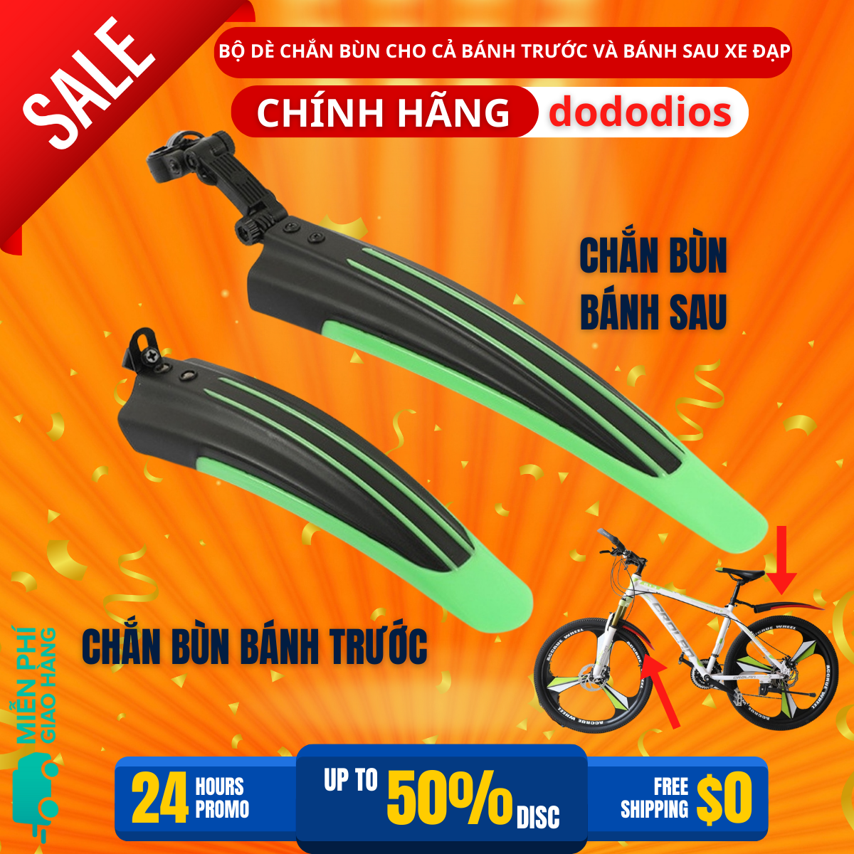 ✨2 Dè Chắn Bùn Cho Cả Bánh Trước Và Bánh Sau Xe Đạp Leo Núi 4 Sọc Màu - Chính hãng dododios