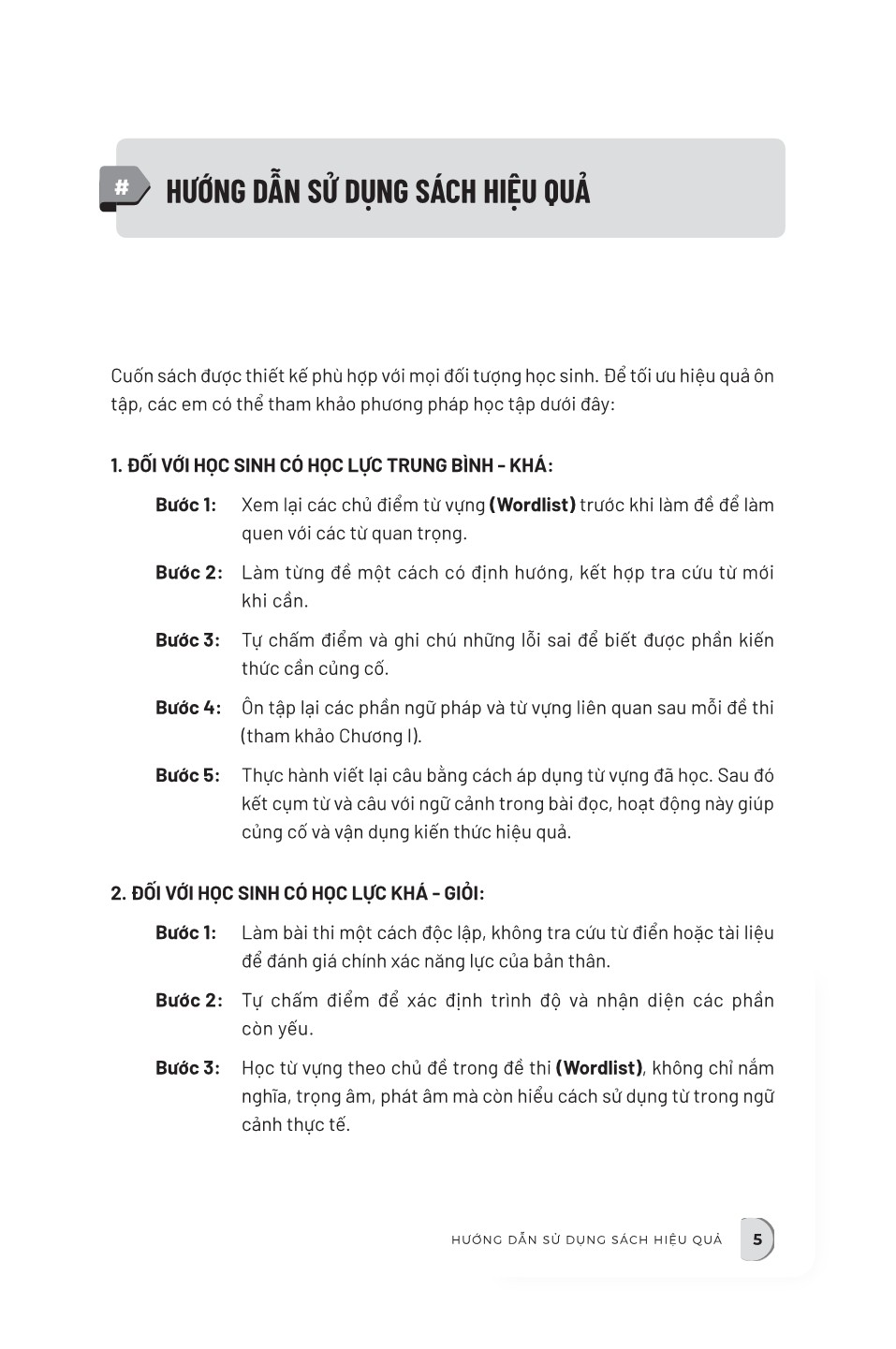 Cuốn sách được thiết kế phù hợp với mọi đối tượng học sinh. Để tối ưu hiệu quả ôn tập, các em có thể tham khảo phương pháp học tập dưới đây:
