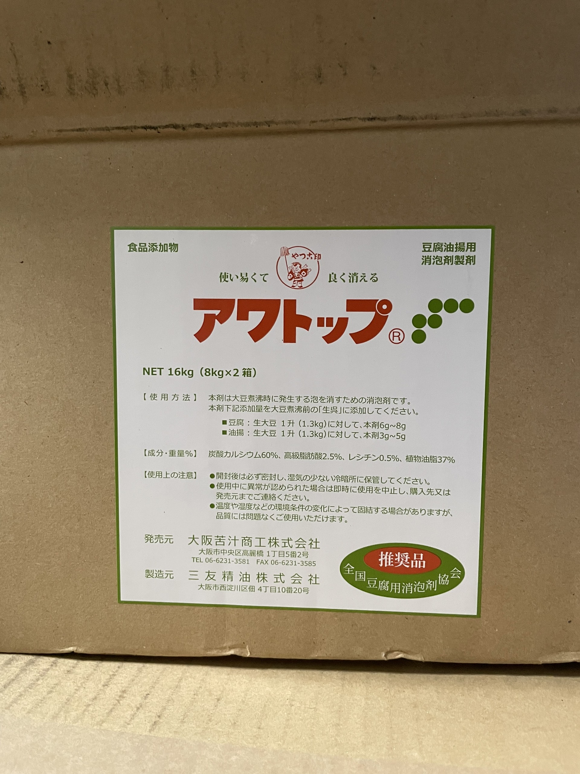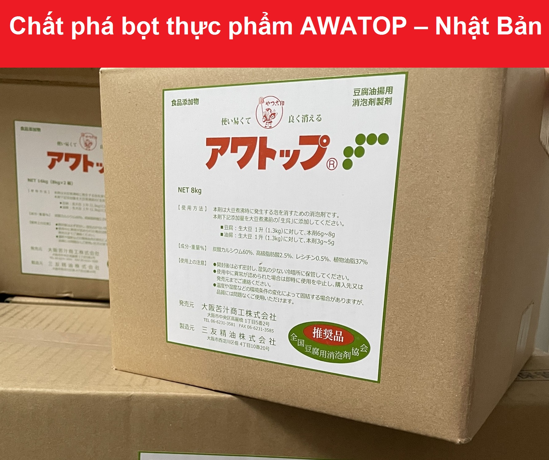 AWATOP Nhật Bản phụ gia thực phẩm phá bọt sữa đậu nành tăng độ béo cho đậu hũ đậu phụ, thùng 8kg. Thông tin về sản phẩm: Tên thường gọi : Phá bọt sữa đậu