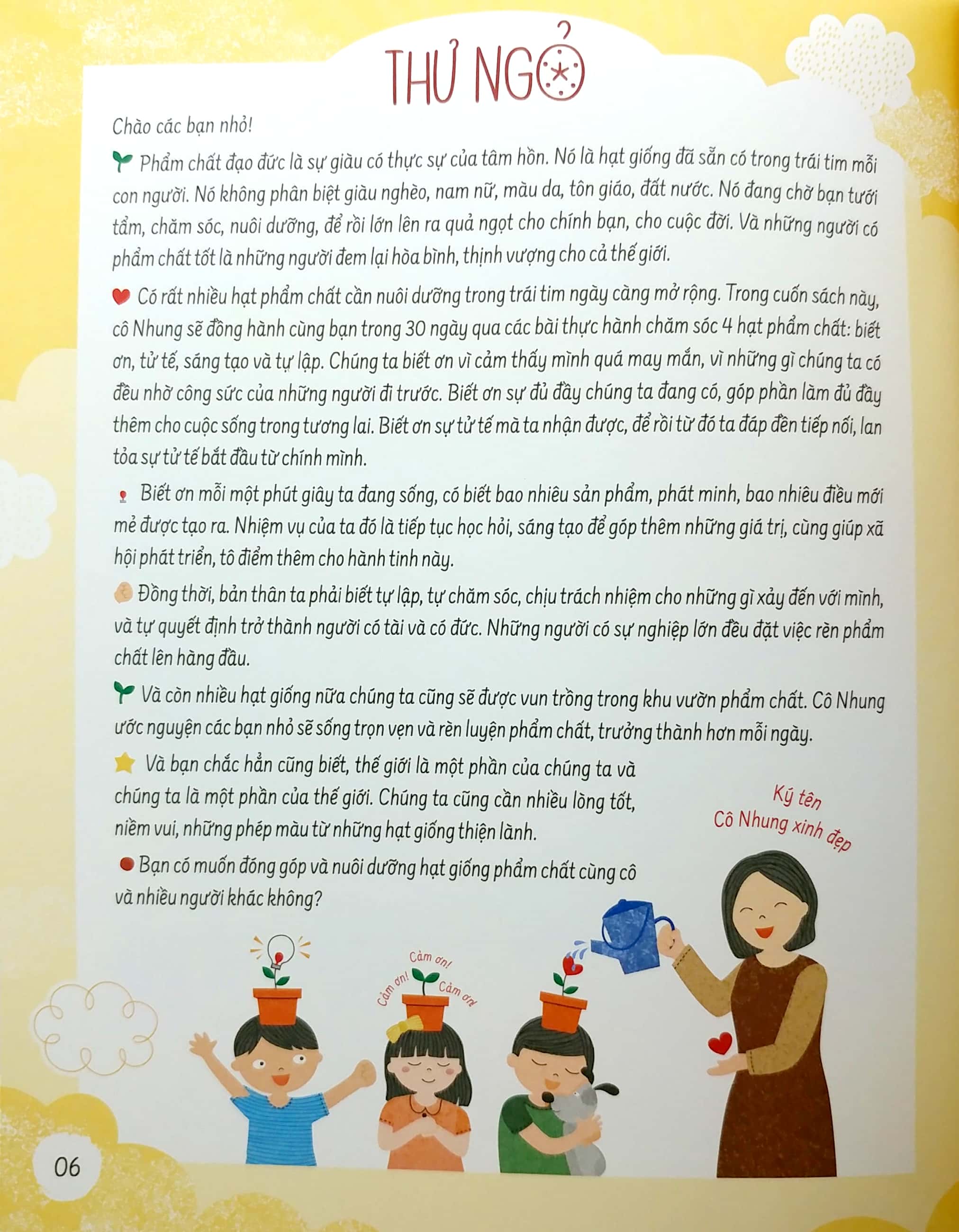 Nhà xuất bản Phụ nữ Việt Nam vừa ấn hành sách 30 Ngày rèn luyện phẩm chất: Biết ơn, Tử tế, Sáng tạo, Tự lập của tác giả Đậu Thị Nhung. Sách do 2 họa sĩ Hoa Quỳnh, Phúc Bee minh họa.