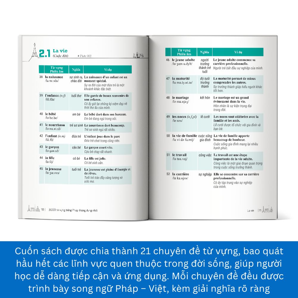Cuốn “3000 từ vựng tiếng Pháp thông dụng nhất” chính là giải pháp giúp bạn chinh phục tiếng Pháp dễ dàng hơn, với hệ thống từ được chọn lọc kỹ lưỡng, phân chia khoa học theo chủ đề quen thuộc của đời sống.