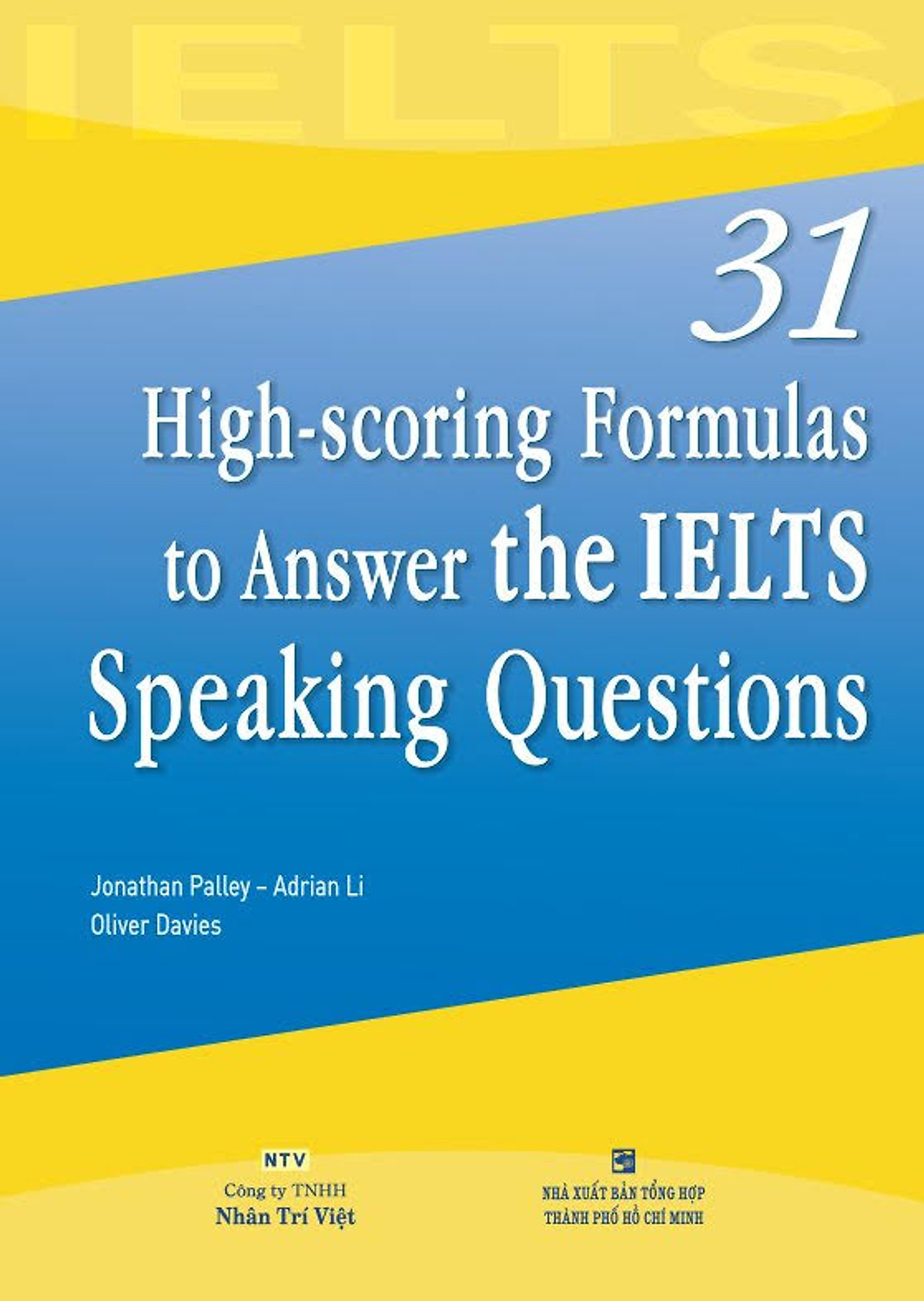 31 High-scoring Formulas To Answer The IELTS Speaking Questions 31 High-scoring Formulas To Answer The IELTS Speaking Questions là cuốn thực hành kỹ năng nói được soạn bởi bộ ba tác giả Johnathan, Oliver, Adrian, trình bày các kỹ năng, tips trả lời các dạng câu hỏi thường gặp ở cả 3 Parts. Cái hay là mỗi dạng câu hỏi, ví dụ như “ Do you like X?”, “ What do you usually do?”, “What do you dislike about X?”, đều được tác giả “công thức hóa” cách trả lời. Các bạn sẽ thấy rõ điều này ở phần Answer Order and Language Steps. Tác giả viết cụ thể người nói cần phải đi qua những bước nào để đáp ứng yêu cầu về mặt content của mỗi dạng câu hỏi, vô cùng hữu ích cho bạn nào còn yếu ở khoản ý tưởng, cách sắp xếp, diễn đạt ý. Bên cạnh đó, mỗi ví dụ trả lời cho từng câu hỏi, tác giả cung cấp một loạt từ vựng kèm theo giải thích nghĩa và cách sử dụng. Bạn sẽ thấy rõ điều này ở mục Native Speaker Words. Chưa hết, 31 High-scoring Formulas To Answer The IELTS Speaking Questions còn hướng dẫn bạn cách sử dụng các linking words để kết nối các ý với nhau trong bài nói như thế nào. Điểm cộng nữa là khác với nhiều sách luyện Speaking hiện nay, cuốn sách này có khá nhiều dạng bài tập khác nhau để bạn củng cố lại ngữ pháp. Đây là những bài tập mà việc thành thạo ngữ pháp sẽ giúp bạn “ăn điểm”