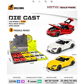 - 3211D Mô hình xe ô tô kim loại pull-back - bộ 12 chiếc (KT 15x6.5x4.5cm)