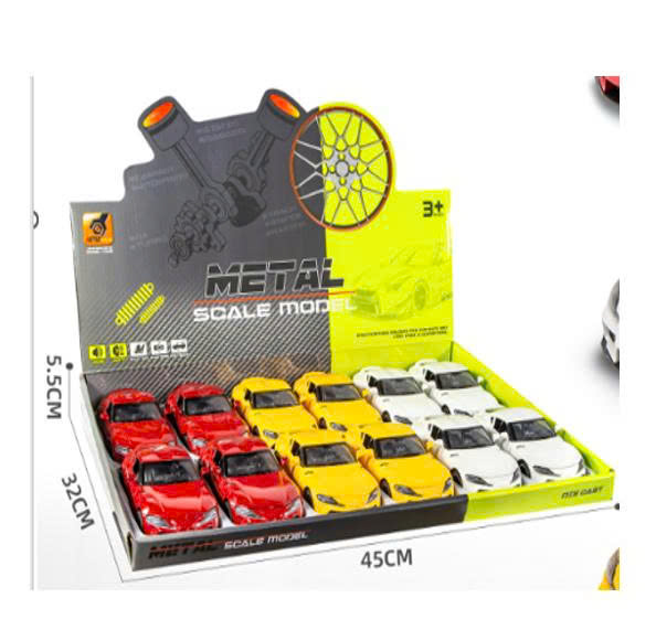 1087-8 – Mô hình ô tô sắt 12 xe/hộp (KT 7.3x2.7x2.5cm) Mô hình ô tô 1087-8 gồm 12 xe trong một hộp, với thiết kế mô phỏng nhiều kiểu dáng xe khác nhau. Kích thước