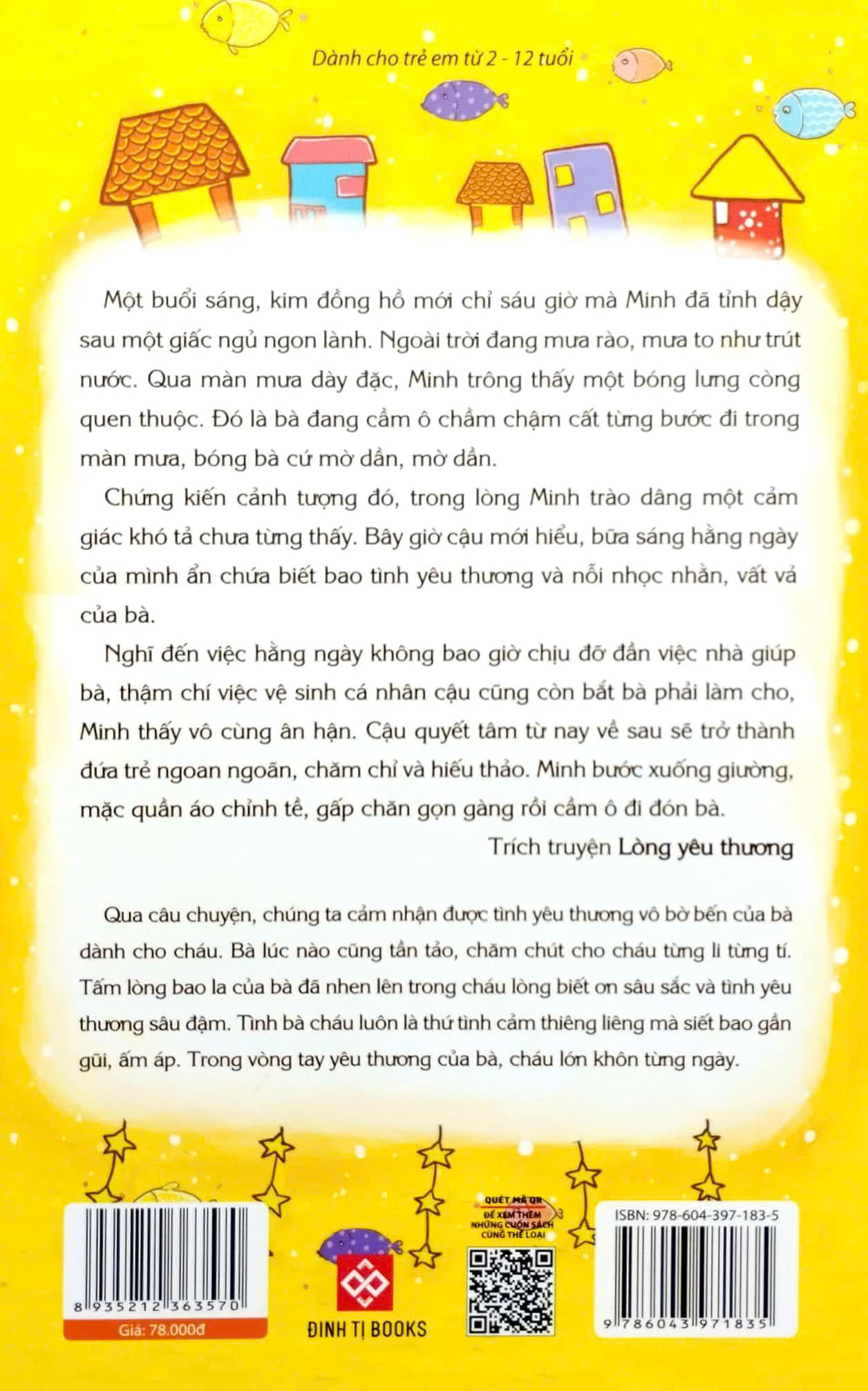 Mỗi truyện ngắn trong tập sách này đều ấp ủ một thông điệp về tình yêu thương… Dẫu là đồng thoại, cổ tích viết lại, giả tưởng hay đời thường thời hiện tại… với góc