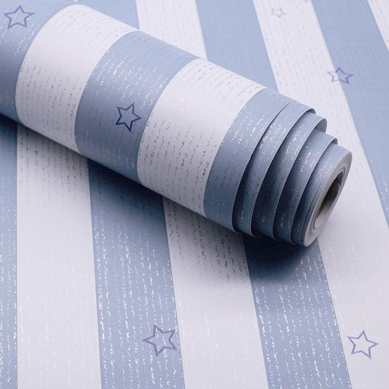 ✨5M Giấy Dán Tường - Decal dán tường Xọc Trắng Xanh Ngôi Sao