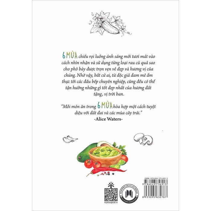 Không chỉ là những công thức đơn điệu, 6 MÙA khuyến khích và hướng dẫn chúng ta, những độc giả bận rộn, cách chế biến thực ăn thịnh soạn, chất lượng mà chẳng hề cầu kỳ. Cuốn sách chiếu rọi luồng ánh sáng mới tươi mát vào cách nhìn nhận và sử dụng từng loại rau củ quả sao cho phô bày được trọn vẹn vẻ đẹp và hương vị của chúng. Nhờ vậy, bất cứ ai, từ độc giả đam mê ẩm thực tới các đầu bếp chuyên nghiệp, cũng có thể tận hưởng những gì tốt đẹp nhất của hương đất tặng, vị trời ban.
