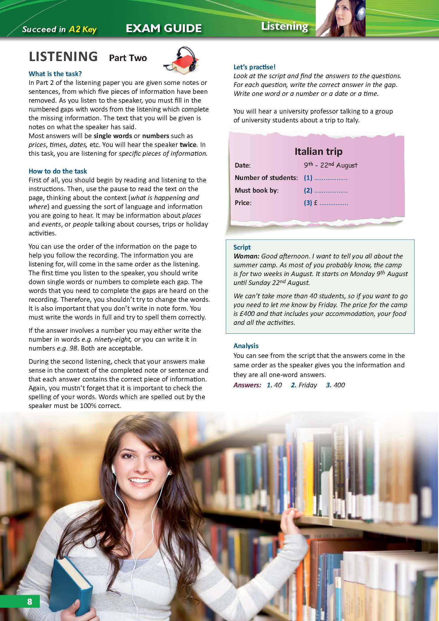 - Tuần 2 (Week 2) và Tuần 3 (Week 3): Làm quen với các dạng bài thường xuất hiện trong 4 Section của bài thi IELTS Listening. Cuốn sách sẽ đi sâu vào phân tích