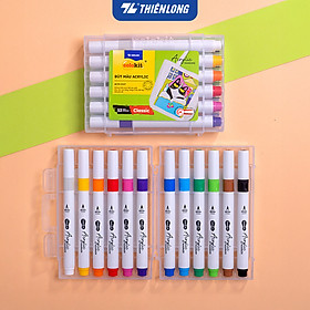 Bút lông màu Acrylic Markers Thiên Long Colokit 12/24/36 màu với thiết kế đầu BRUSH linh hoạt đáp ứng được đa dạng nhu cầu sử dụng. Bút màu Acrylic khô nhanh, chống nước tốt và sử dụng được trên nhiều chất liệu như giấy, vải, nhựa, gốm…