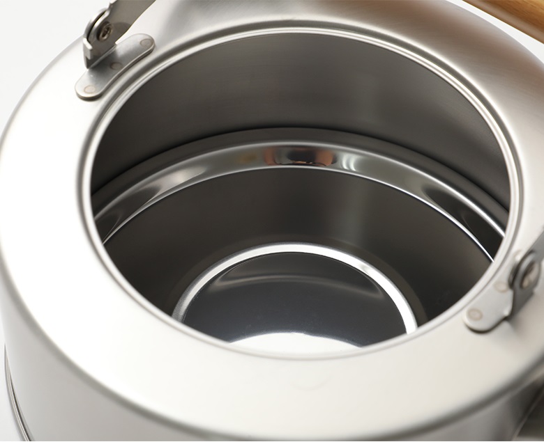 - Tay xách & núm nắp bằng thép & gỗ Chitose tự nhiên hoặc nhựa Phenolic cách điện, cách nhiệt tối ưu. Kích thước: 268x197x211 Hmm Dung tích: 2.5 lít Trọng lượng: 730g Công dụng: