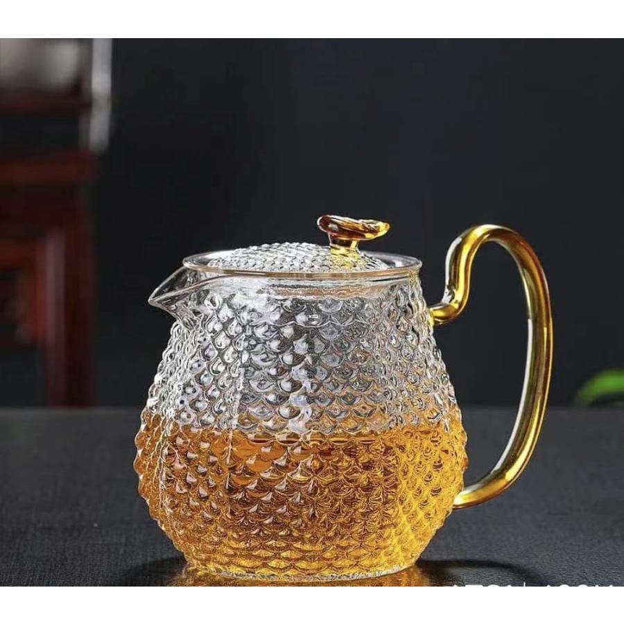 ✨Ấm pha trà thủy tinh chịu nhiệt cao cấp vân cá 600ml