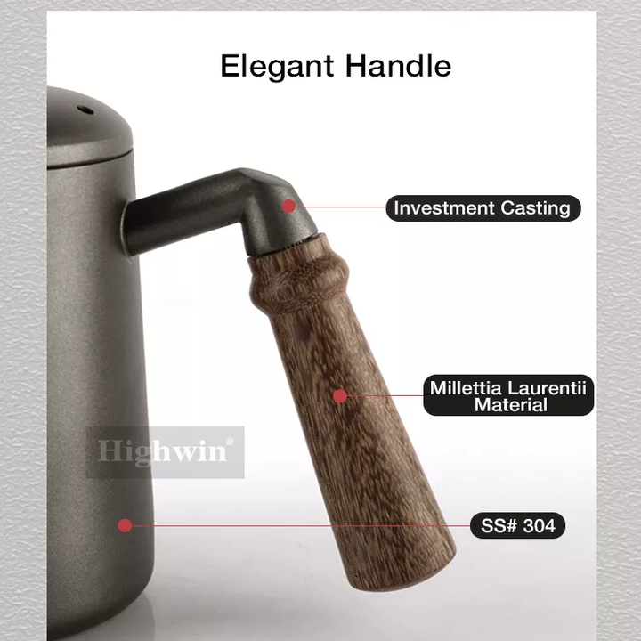 Bình cổ ngỗng pha cafe tay gỗ có nhiệt kế 600ml | Cà phê Lyon