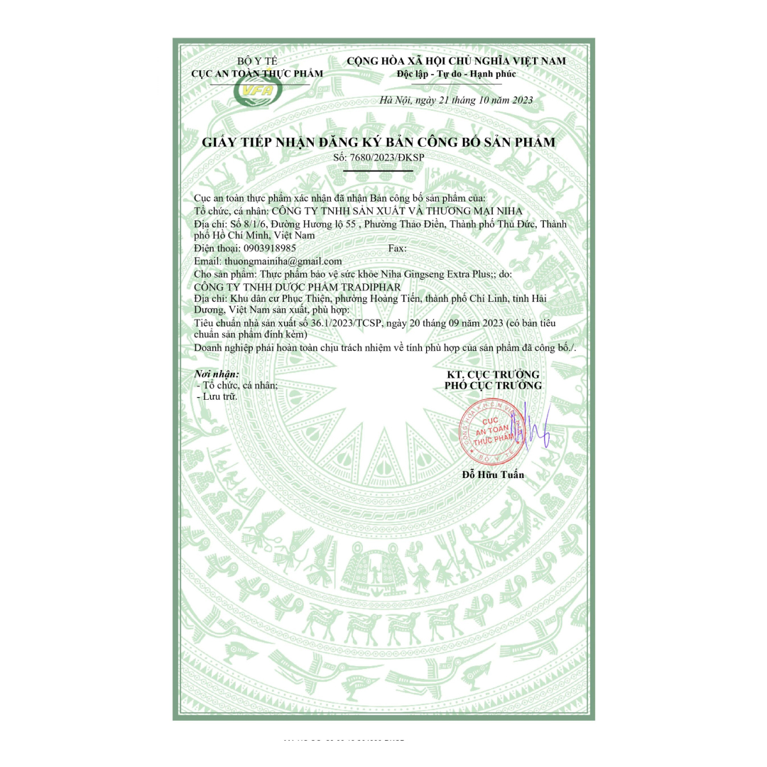 NIHA GINSENG EXTRA PLUS - Hồng Sâm Bồi Bổ Cơ Thể, Tăng Cường Sức Khỏe, Giảm Mệt Mỏi