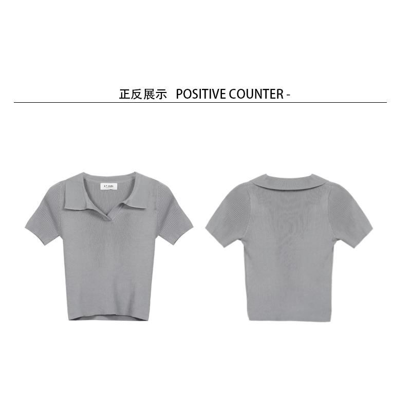 Áo croptop dệt kim tay ngắn cổ polo thời trang Hàn Quốc thanh lịch #Shorts