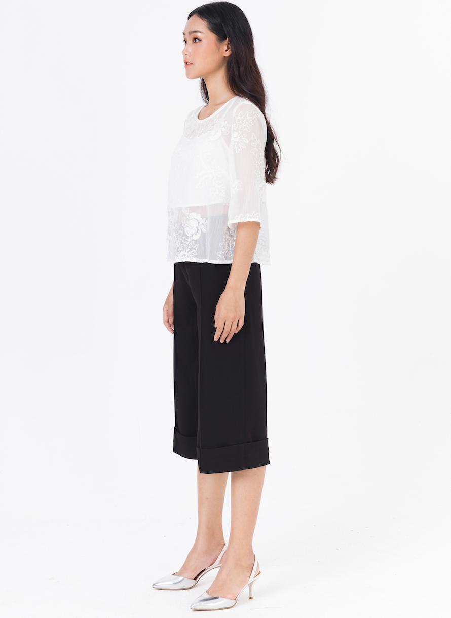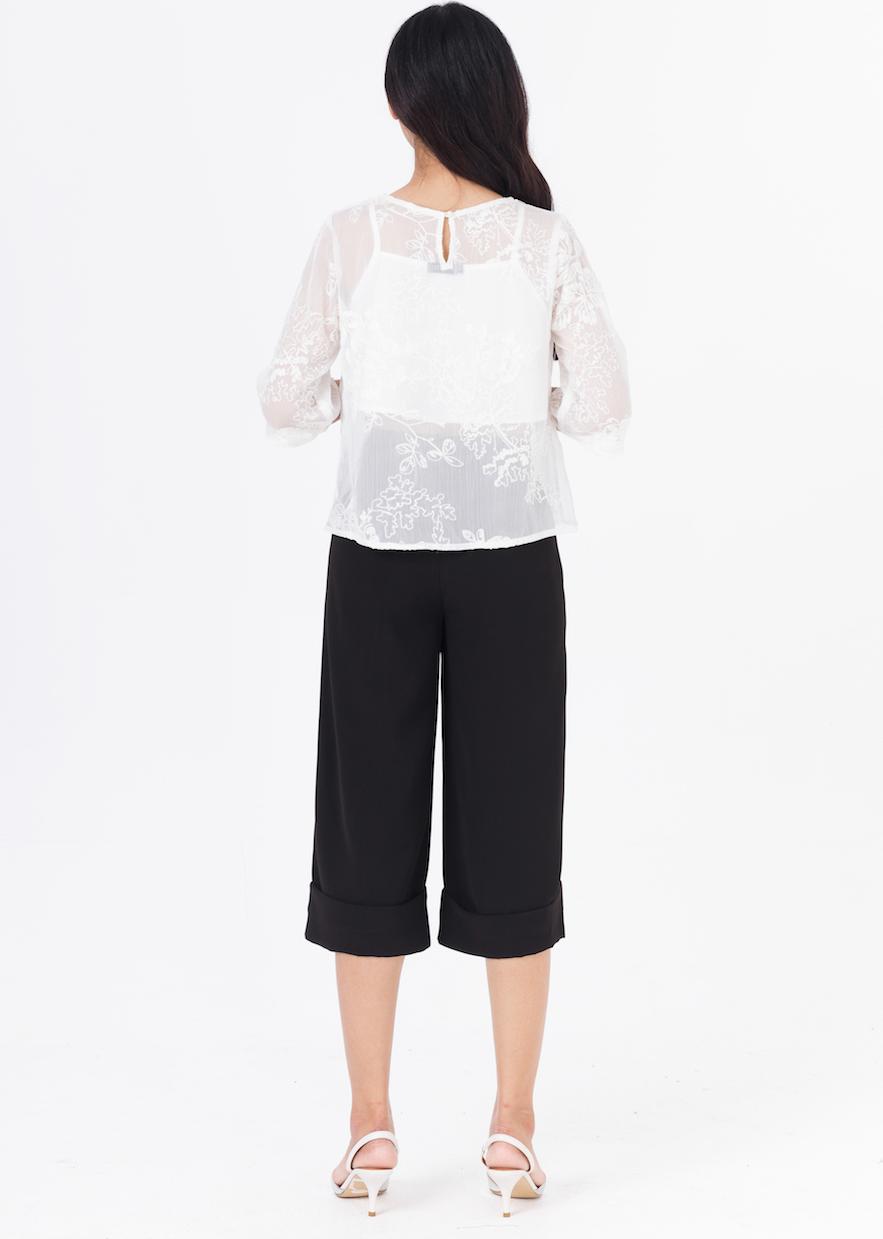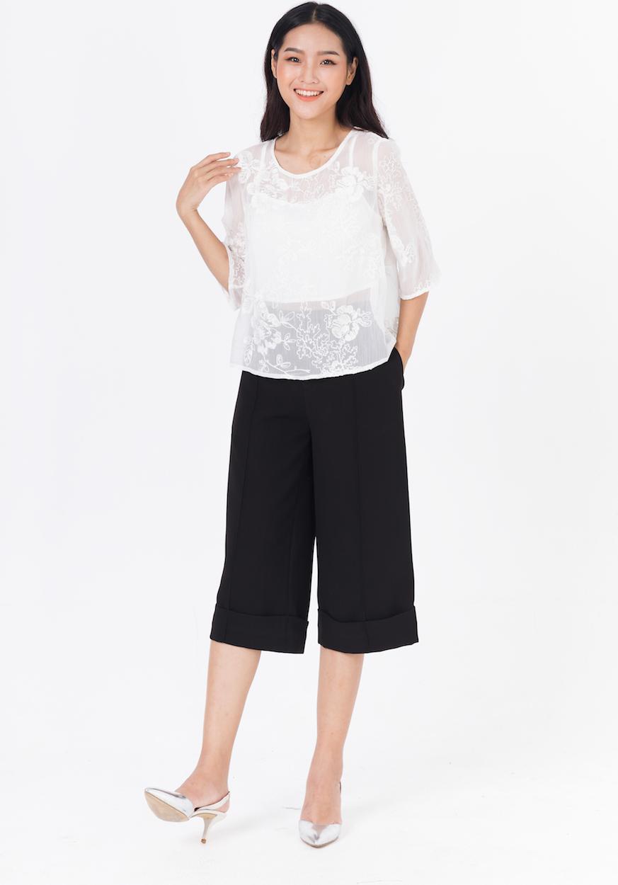 Áo croptop tay lửng vải tơ thêu tinh tế, thanh lịch, trẻ trung. Áo 2 lớp với áo lót trong rời, dáng croptop ngắn quyến rũ. Áo có thể phối với chân váy nữ tính,