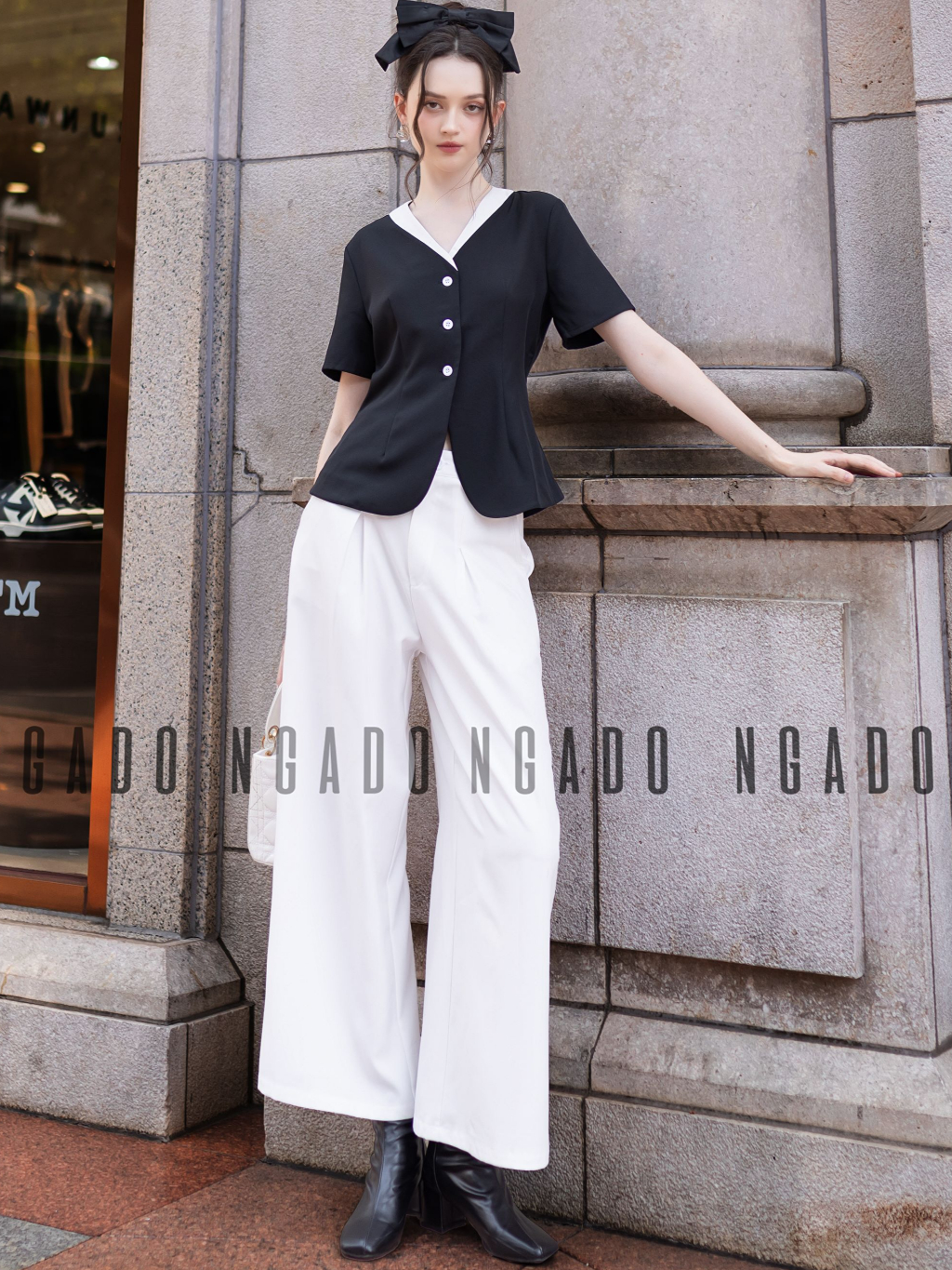 ✨Áo đen cổ viền trắng NGADO , Áo kiểu nữ , áo thiết kế