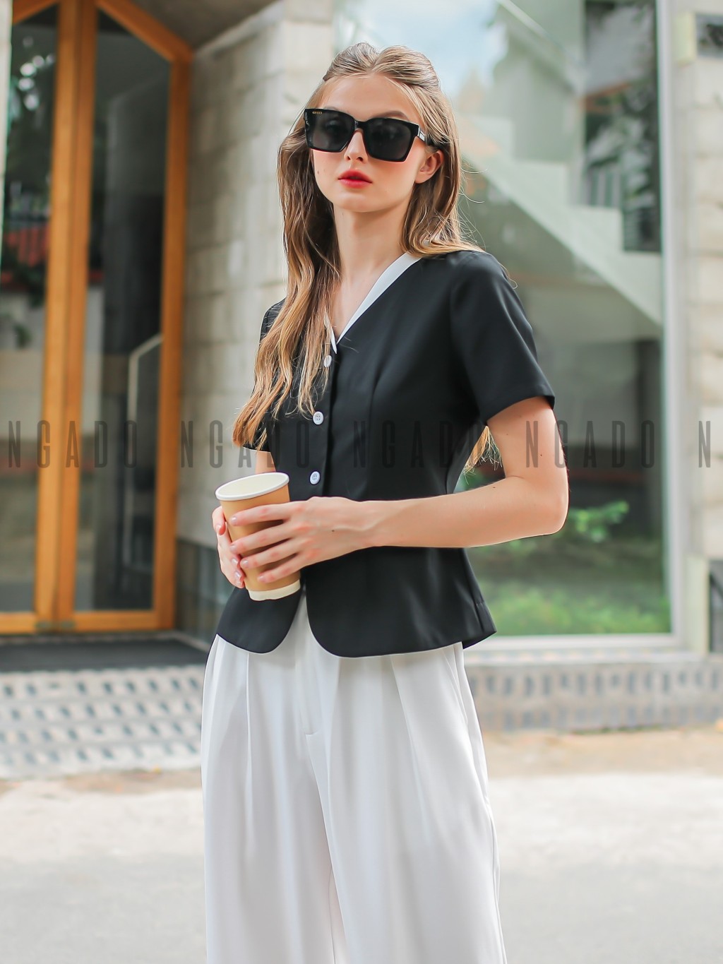 ✨Áo đen cổ viền trắng NGADO