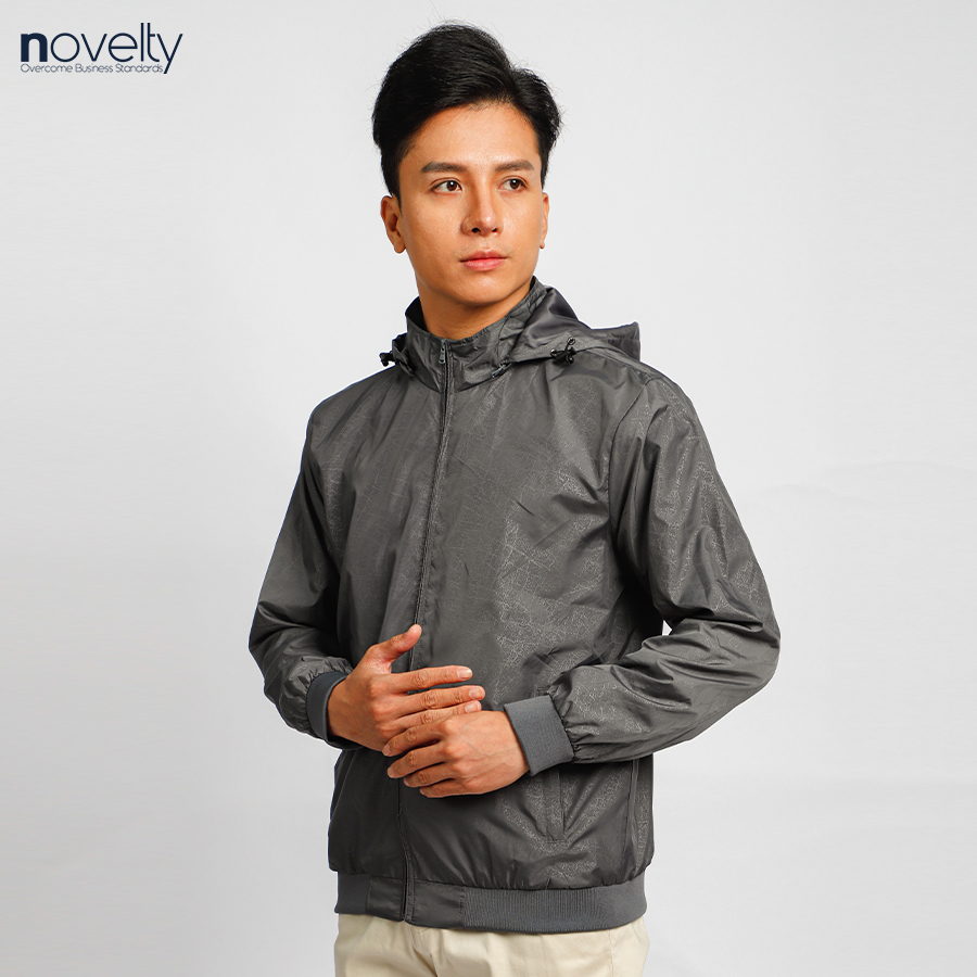 ✨Áo jacket nam in chìm nón rời Novelty xám đậm 2203262