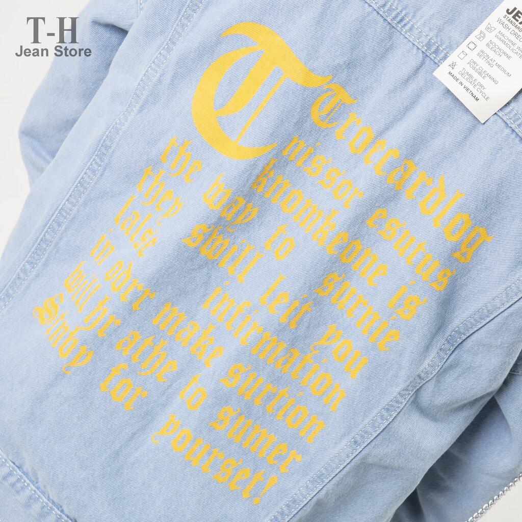 Mua tại TiktokThông tin chi tiết của sản phẩm áo jean nam móc xích chữ vàng