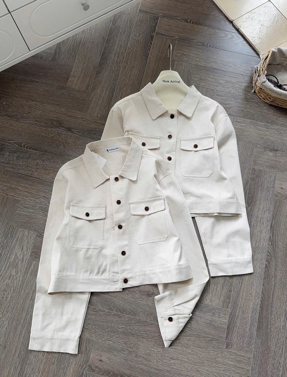 Mua tại TiktokChất liệu: Jean mềm, bền màu, giữ form tốt. • Thiết kế: Dáng khoác basic, form rộng vừa, tay dài, có túi tiện lợi. • Màu sắc: Trắng tinh tế, dễ phối cùng nhiều outfit.