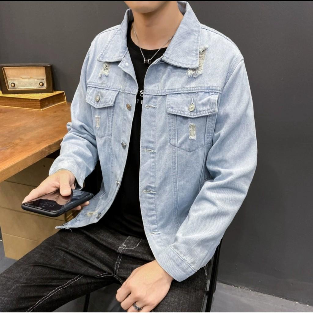 Áo khoác jean nam chống nắng, thiết kế rách đẹp và mẫu mới. Sản phẩm mang đến sự cá tính và thời trang đương đại với chất liệu jean cao cấp và chi tiết thiết