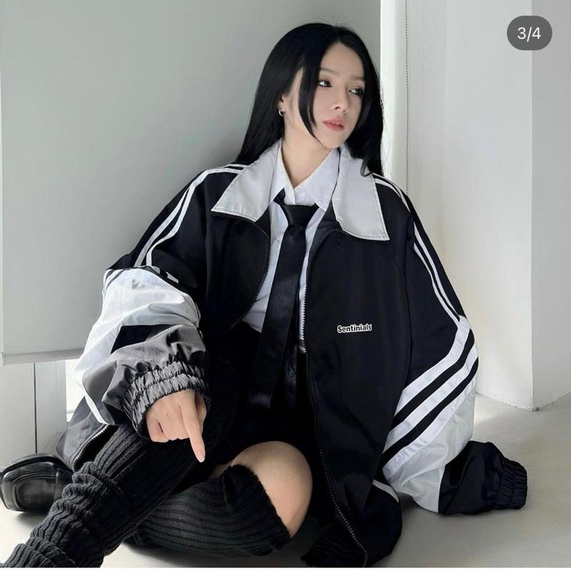 Áo khoác nữ nỉ chống nắng Croptop 3 Sọc Dáng Rộng Mũ To 3 sọc là sự lựa chọn hoàn hảo cho các cô gái yêu thích phong cách thời trang năng động và cá