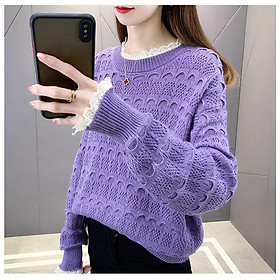 Áo len nữ, áo len dài tay hoạ tiết phối bèo xinh Al27Áo len nữ, áo len dài tay hoạ tiết phối bèo xinh Al27