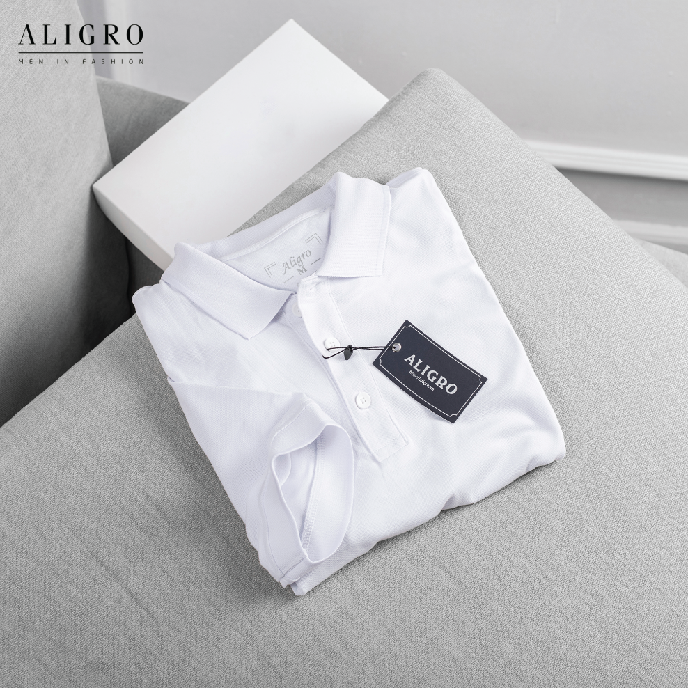 ✨Áo phông cộc tay coupro nam Aligro ALGPLO25 cổ bẻ màu trắng