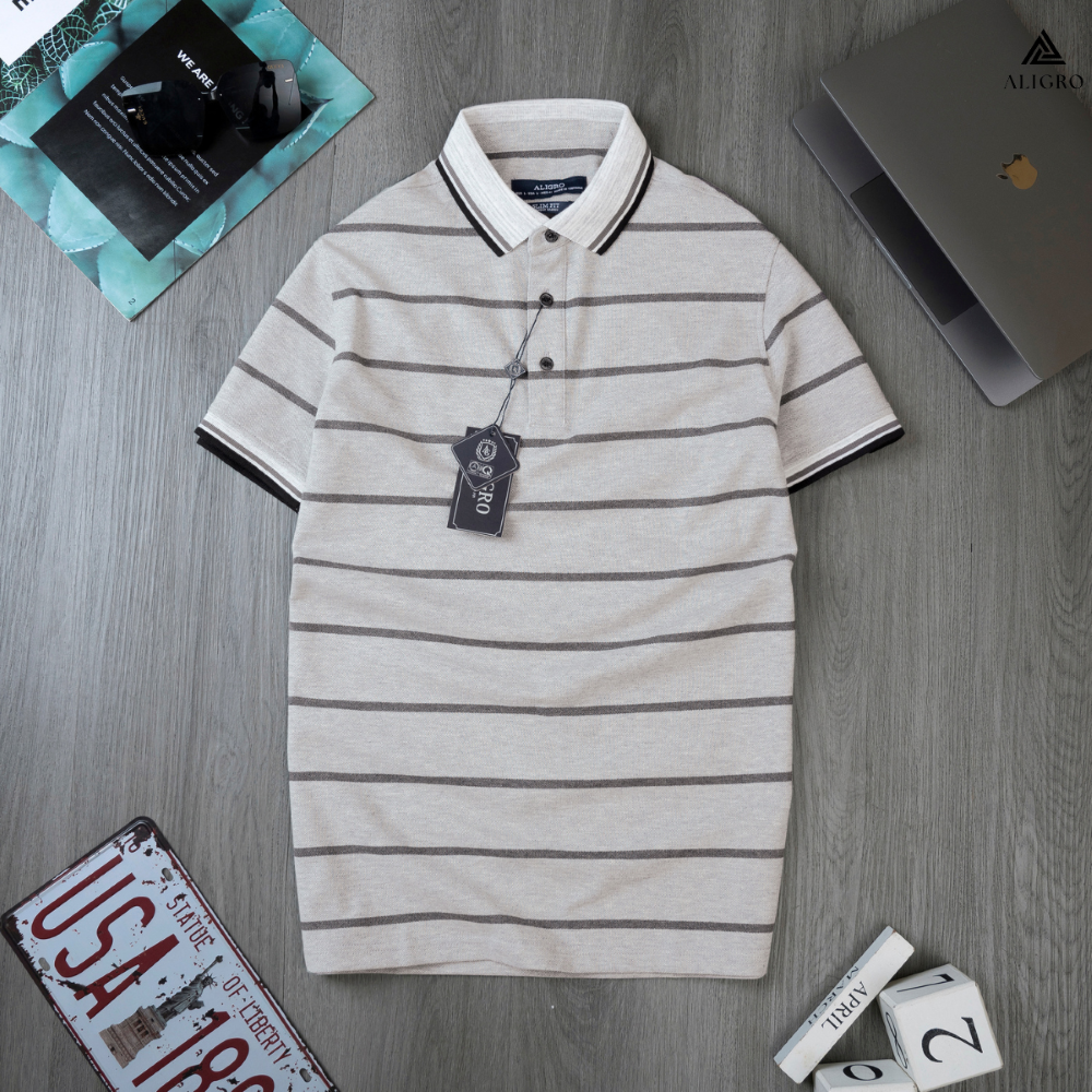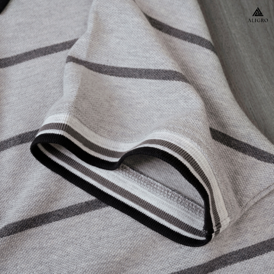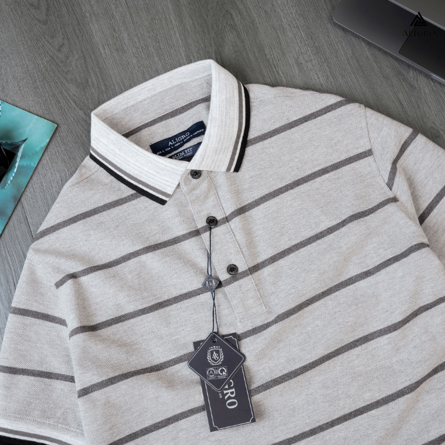 ✨Áo Polo nam ngắn tay kẻ ngang màu ghi ALGPLO84