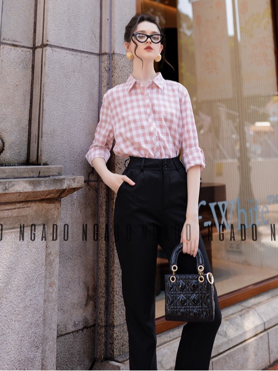 Áo sơ mi nữ dài tay caro sọc nhỏ
