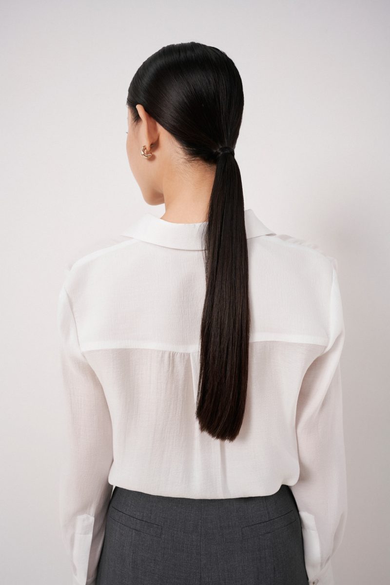 Áo sơ mi Naomi được thiết kế dáng cổ đức bản to và nhọn, nẹp giấu khuy, măng sec dài, súp giữa lưng với chất liệu tơ crepe tạo cảm giác thoải mái và dễ chịu. Mix match cùng quần suông hay chân váy, Naomi đều phù hợp, đảm bảo diện mạo thanh lịch cho quý cô công sở.