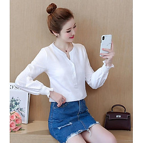 Áo sơ mi nữ là sản phẩm không thể thiếu trong tủ đồ của phái nữ. Thiết kế đơn giản, dáng dài phong cách thanh lịch, trẻ trung Áo tay bồng có khuy cài cực