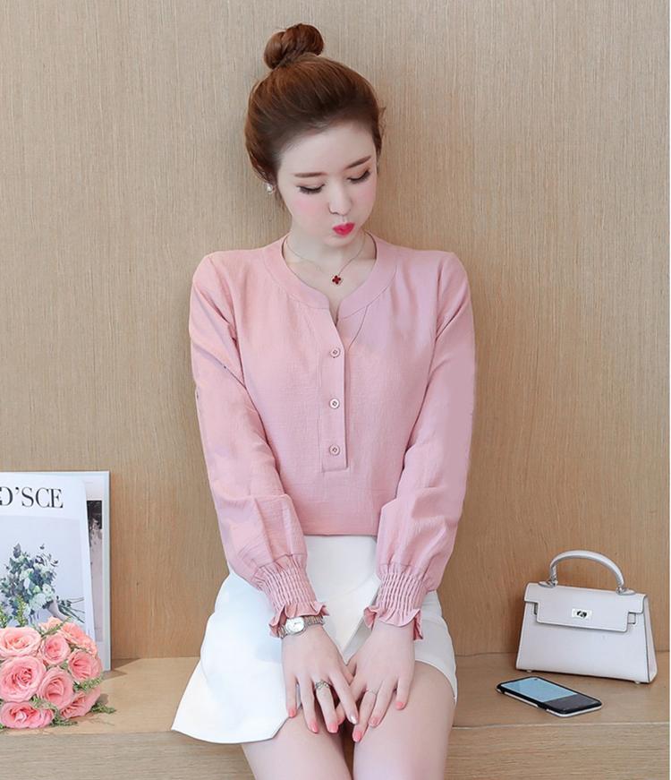 Kiểu dáng: áo sơ mi công sở cổ tim thanh lịch, phối nút duyên dáng, tay dài cài nút phong cách phù hợp công sở, công tác, đi dạy, đi học, đi tiệc Chất liệu:
