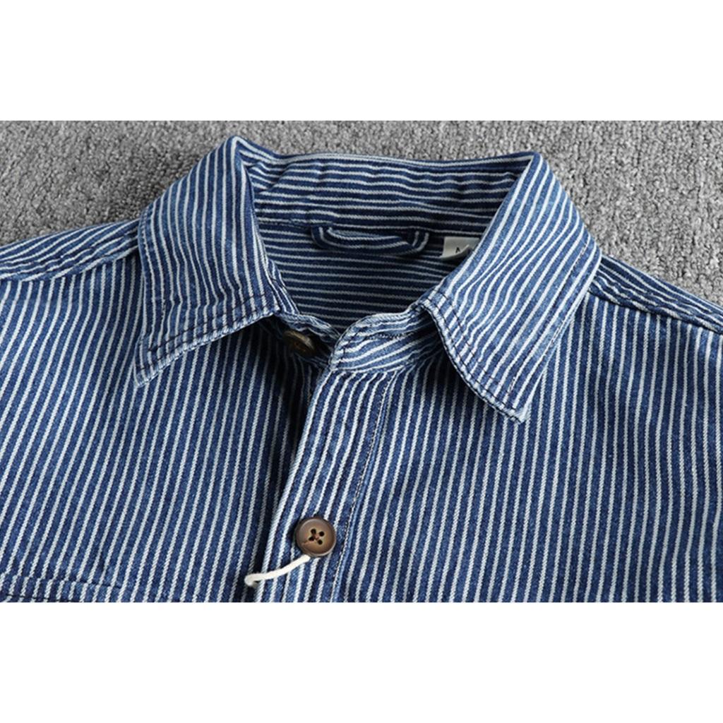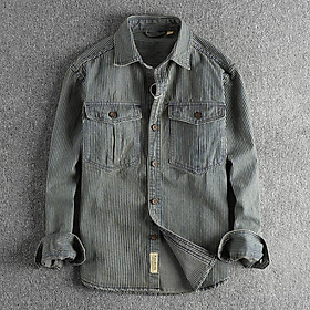 ✨Áo sơ mi denim sọc phong cách Retro_Biker_Army