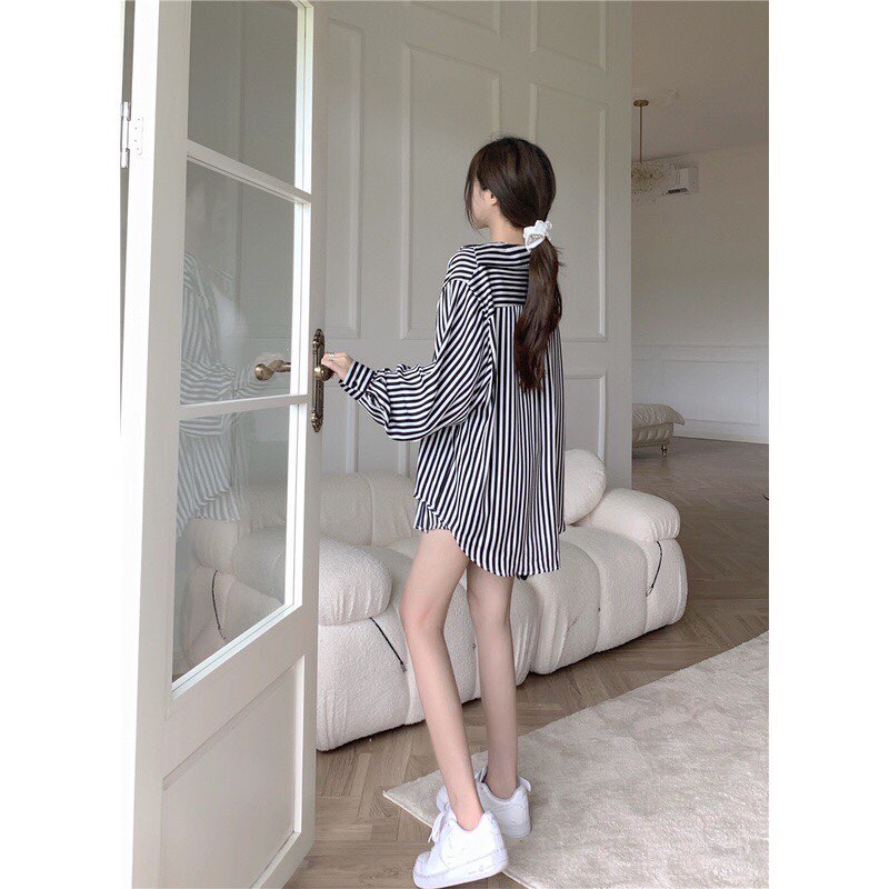 ✨Áo sơ mi kẻ thời trang dáng dài rộng phong cách Hàn Quốc