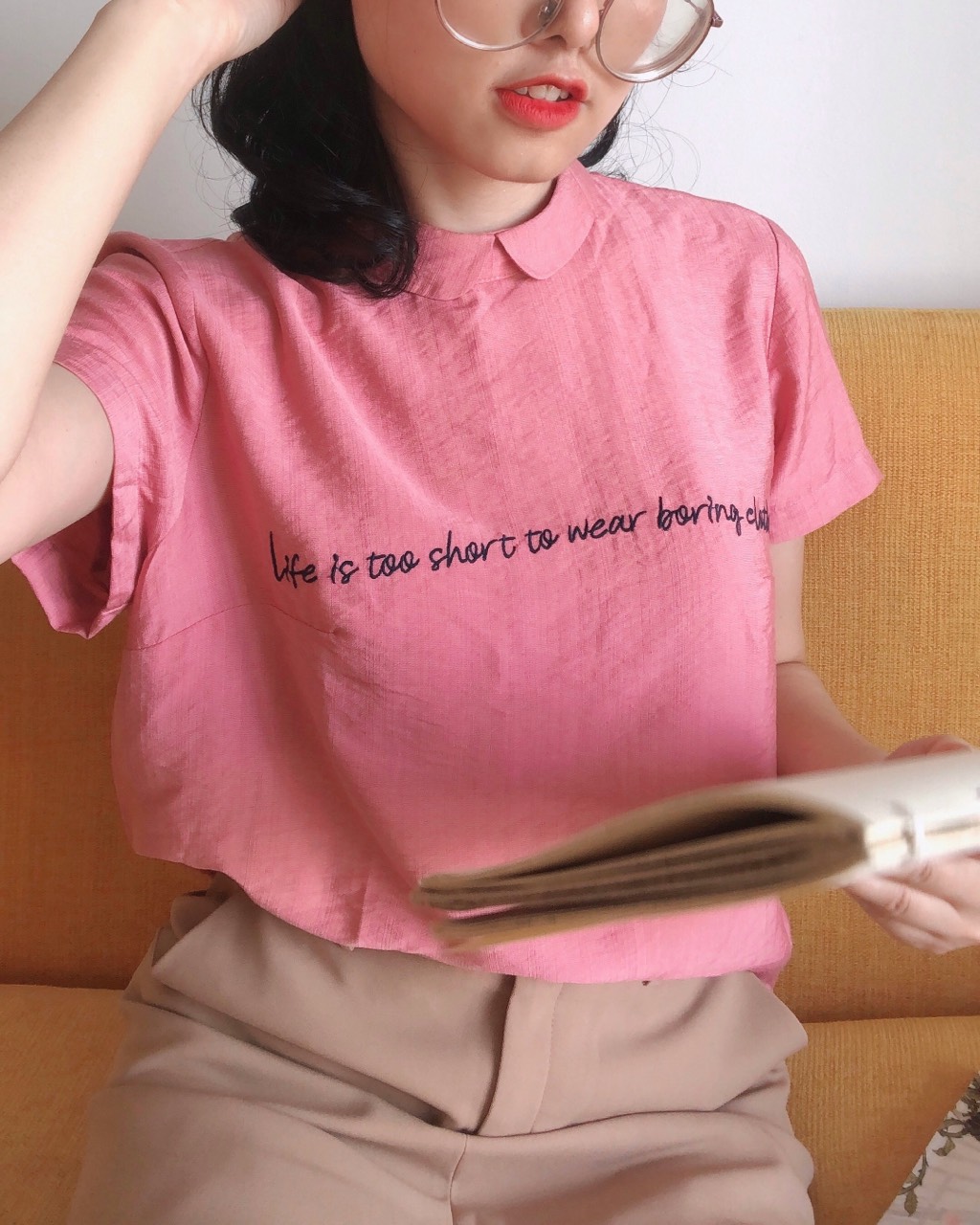 Áo sơ mi màu hồng Peter Pan Blouse Burny A3004312H