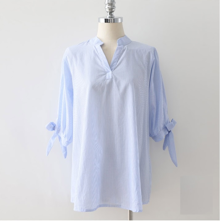 Áo sơ mi sọc phối nơ sau xinh xắn Mô tả Size S: sản phẩm vòng eo rộng 64cm - 66cm, vòng ngực rộng 84cm-86cm, vòng mông rộng 86cm-88cm Size M: sản phẩm vòng eo