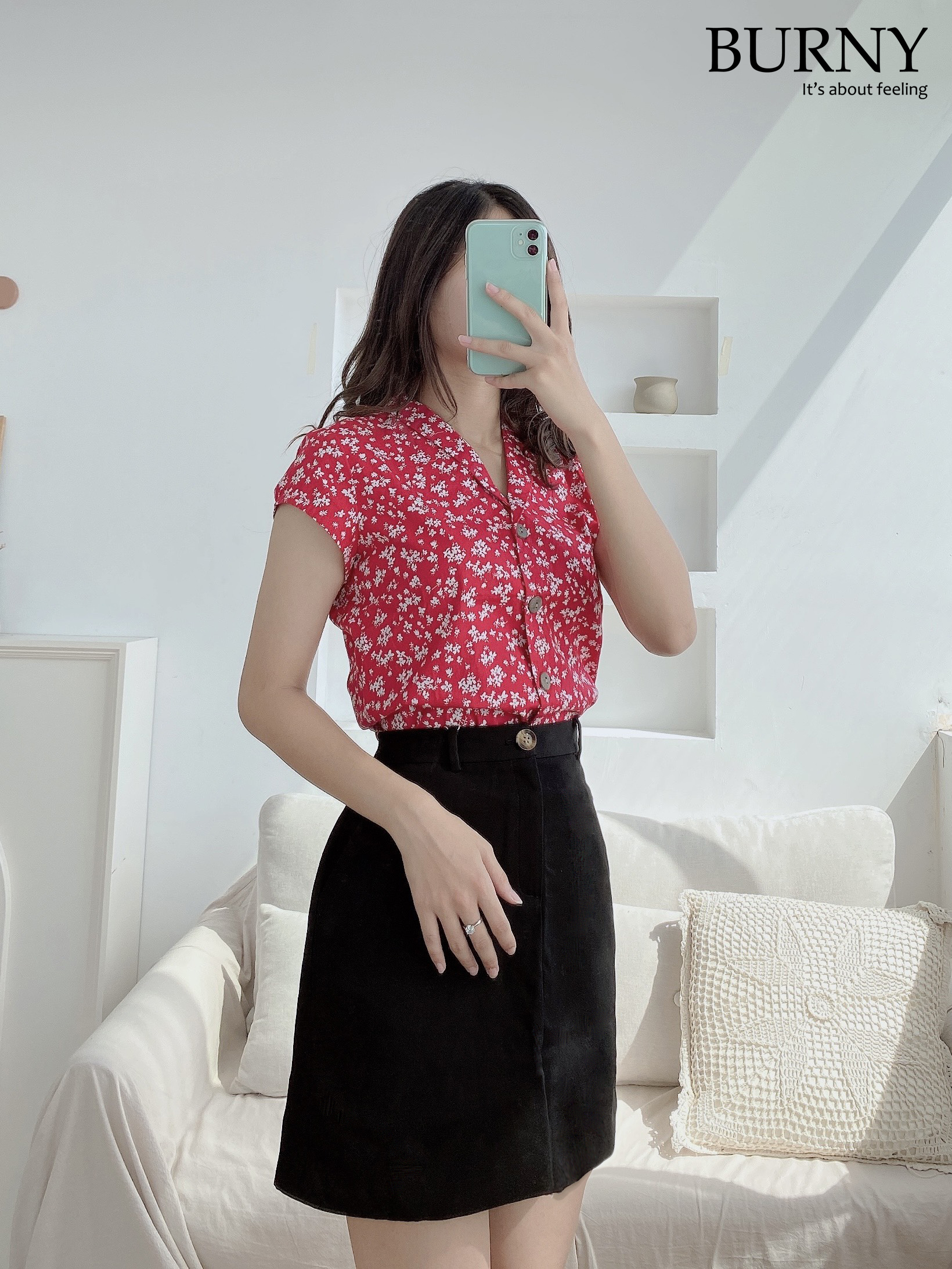Áo sơ mi nữ họa tiết hoa nền màu vàng cổ sam xinh đẹp Burny A3001265V Chất liệu: Thô in hoa, chất liệu tự nhiên, thấm hút mồ hôi, mát nhẹ Áo sơ mi nữ
