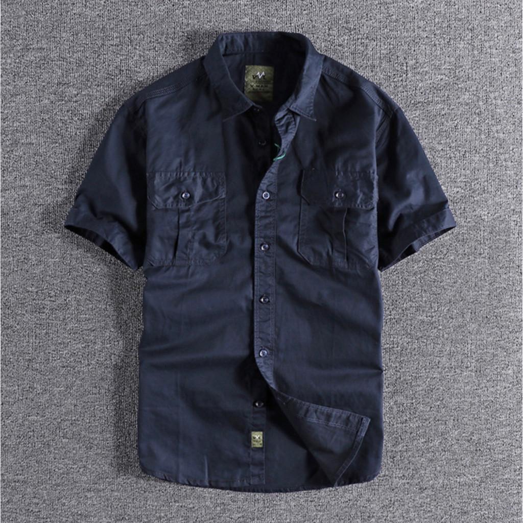 Áo sơ mi Retro túi hộp ngắn tay lính_dã ngoại Áo sơ mi quân đội Wild Casual Chất kaki được wash acid cực bụi , phom chuẩn mặc rất đẹp ạ Model thế hệ mới