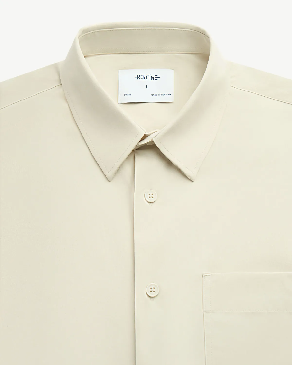 Áo sơ mi tay ngắn nam vải dù nhãn trang trí. Loose - RT 10F24SHS010 | ROUTINE CÀ MAU Đặc điểm nổi bật Form : Loose Fabric : Nylon Gender: Nam Kiểu tay: Tay ngắn