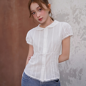 CHI TIẾT SẢN PHẨM ✿ Sản phẩm : Áo sơ mi tay ngắn viền ren dễ thương nữ tính cột nơ sau dễ phối đồ Jenni Miều Est.2013 ✿ Chất liệu : Xô Ren ✿
