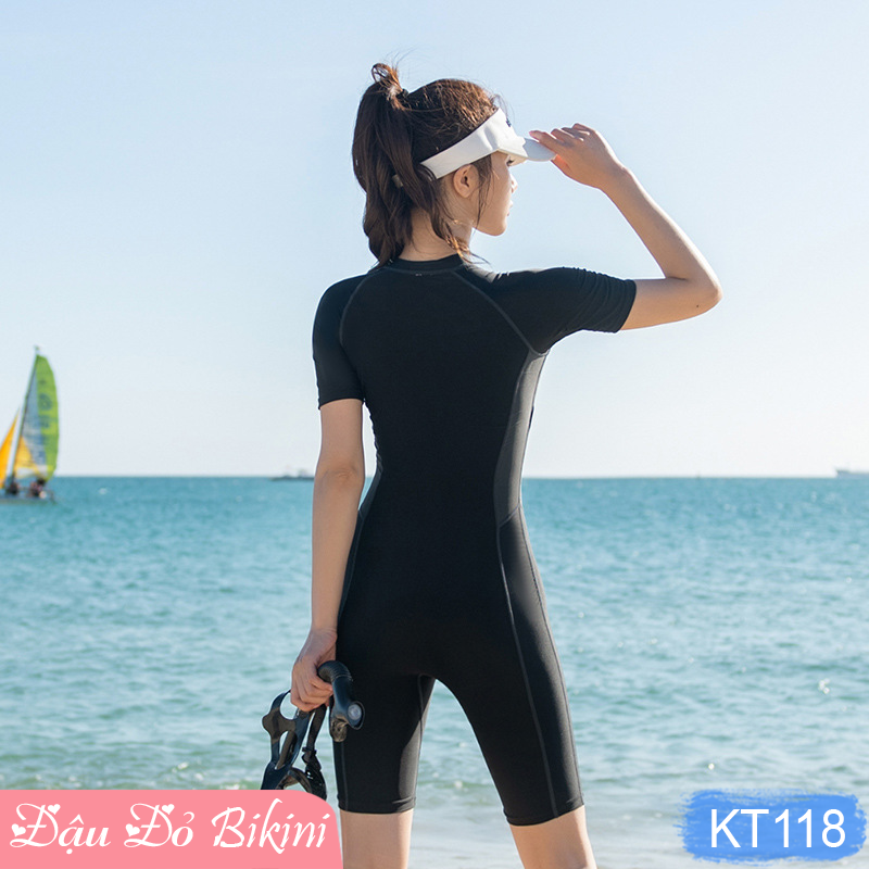 Tự tin khoe trọn vẻ đẹp năng động, trẻ trung và khỏe khoắn trong những chuyến du lịch hè này với Bộ Đồ Bơi Liền Thân Dài Tay Quần Đùi KT901 của Đậu Đỏ Bikini.